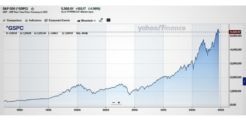 - Ciclos de mercado: El S&P 500 ha experimentado ciclos de mercado alcistas y bajistas. Los mercados alcistas suelen durar más y ofrecer mayores ganancias que los bajistas. La peor caída histórica fue del -86% durante la Gran Depresión, algo que no nos asusta ya que tenemos activadas alertas de mercado de precios, siempre seguimos al mercao, y hacemo relevamiento de tendencias de noticias para ver estrategias corporativas de movimientos de capitales y operaciones sentimentales.