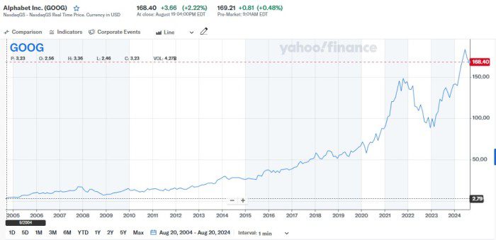 Comentarios luego de 20 años de cotización de Google al 20/08/2024: