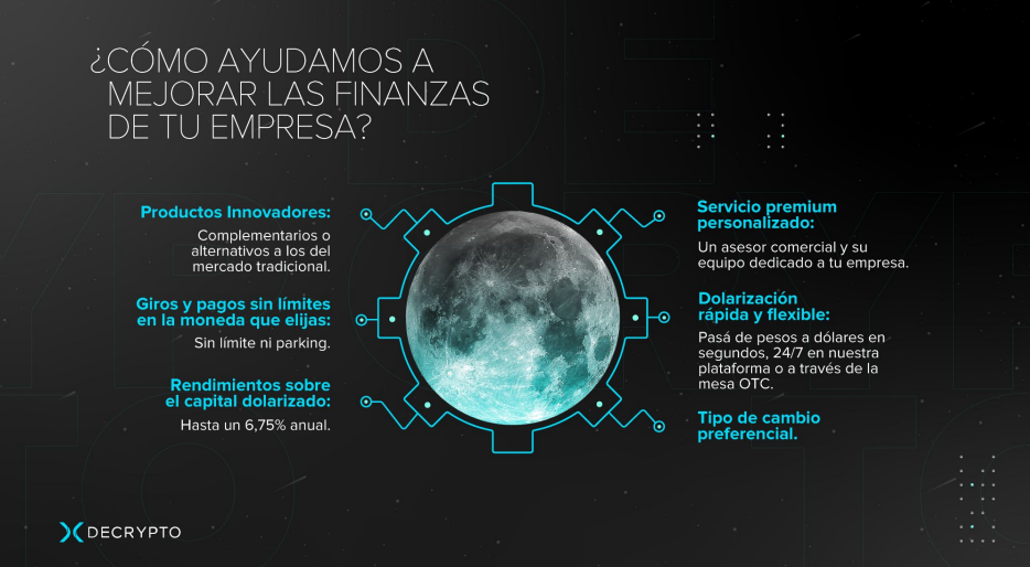 - Tu empresa puede invertir y ganar hasta 6.5% anual en dólares digitales.